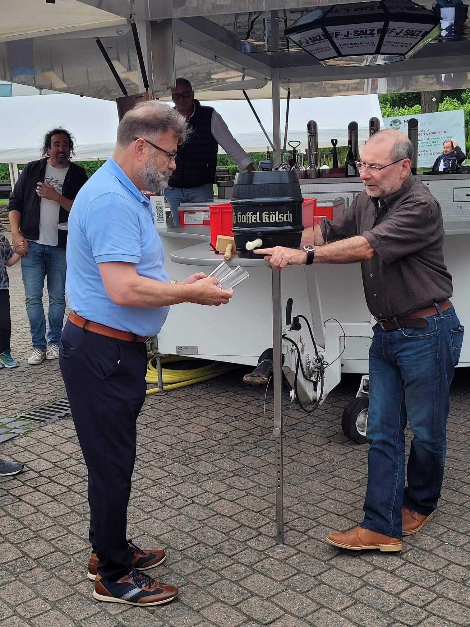 Am vergangenen Wochenende fand die 99. Rhöndorfer Kirmes statt und lockte zahlreiche Rhöndorferinnen und Rhöndorfer sowie Besucher aus der Region an. Das Fest begann am Samstag mit dem traditionellen Fassanstich durch Vizebürgermeister Peter Profittlich, der den offiziellen Startschuss für die Feierlichkeiten gab. Am Abend sorgten die Blueshunters im Musikpavillon mit rockiger Musik für ausgelassene Stimmung und begeisterten das Publikum mit ihren mitreißenden Rhythmen.