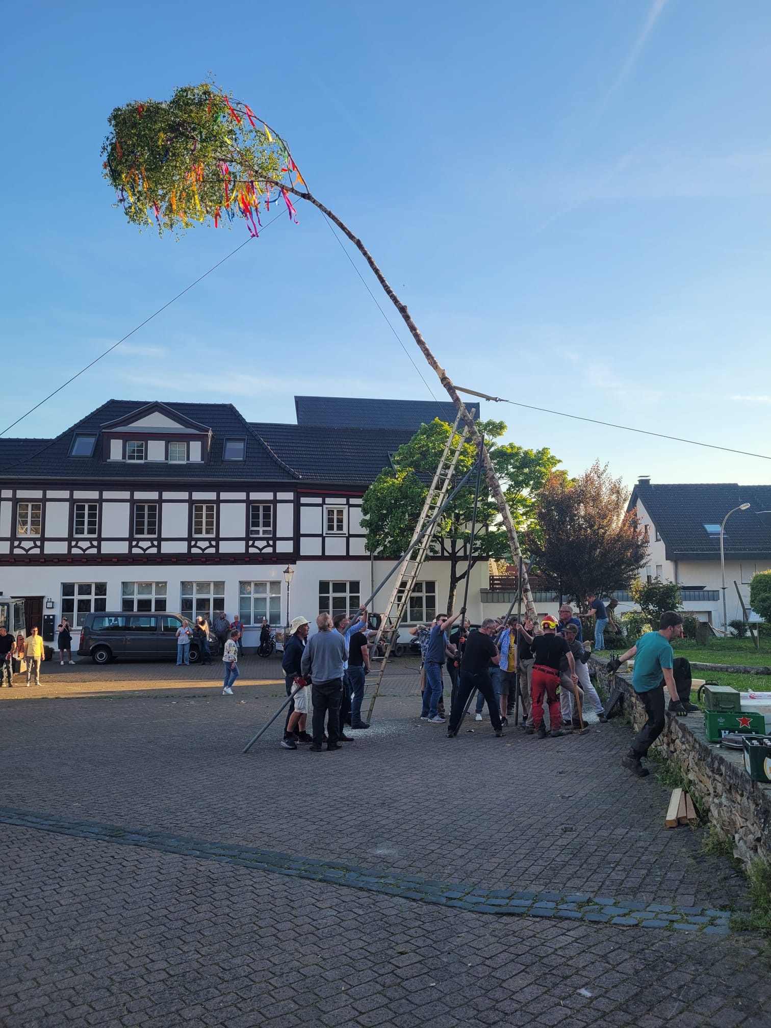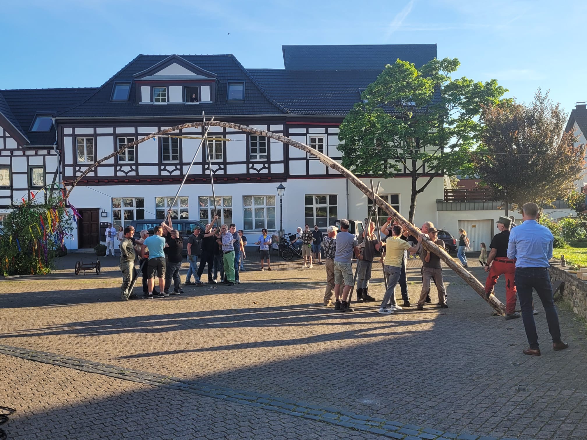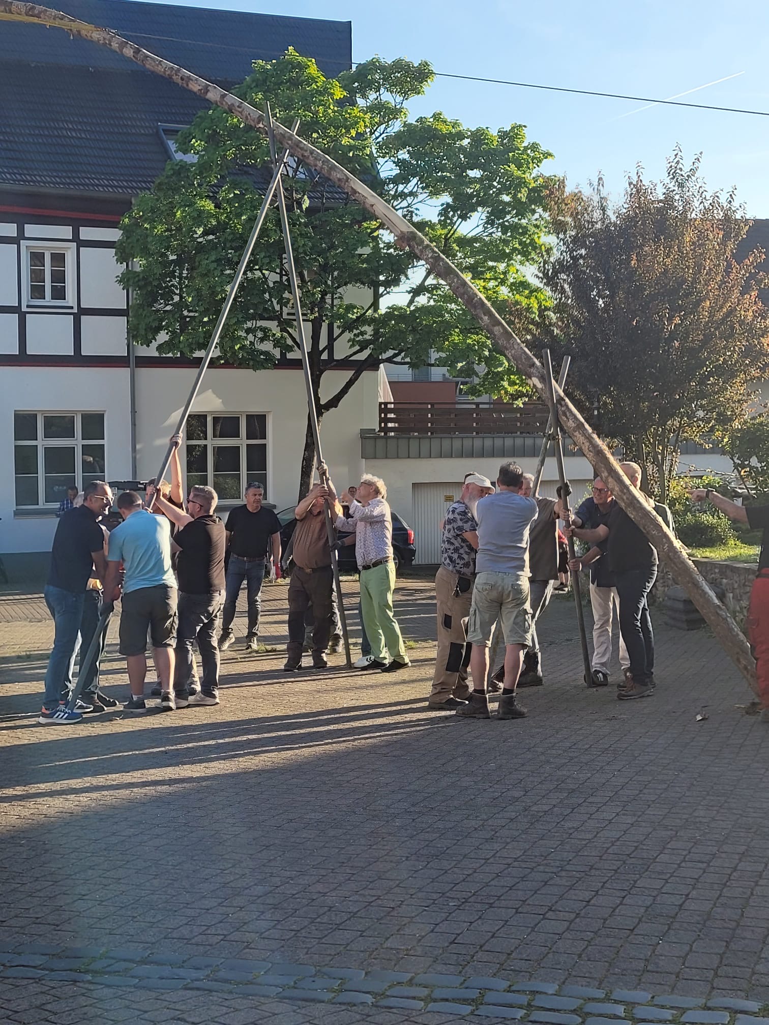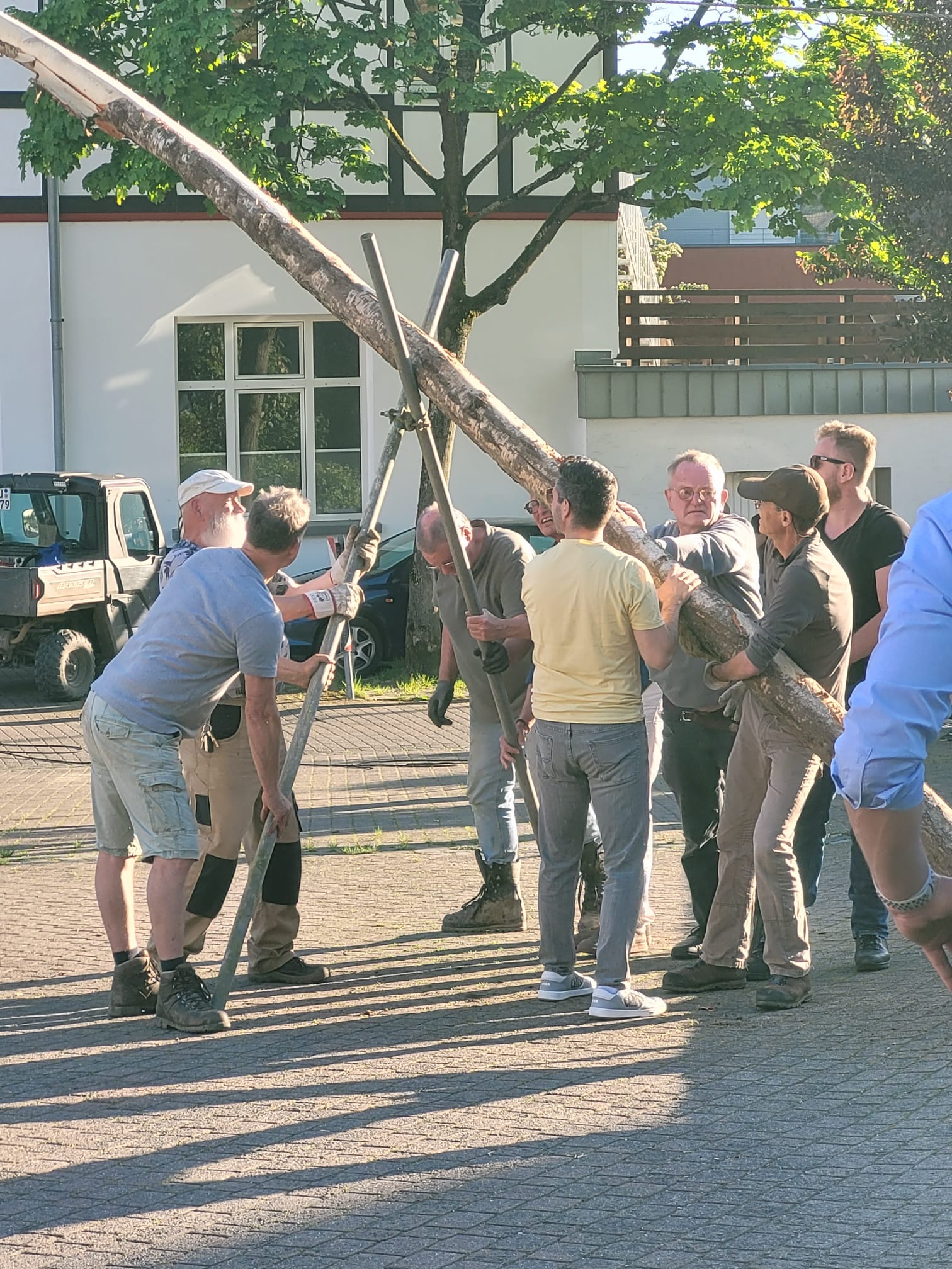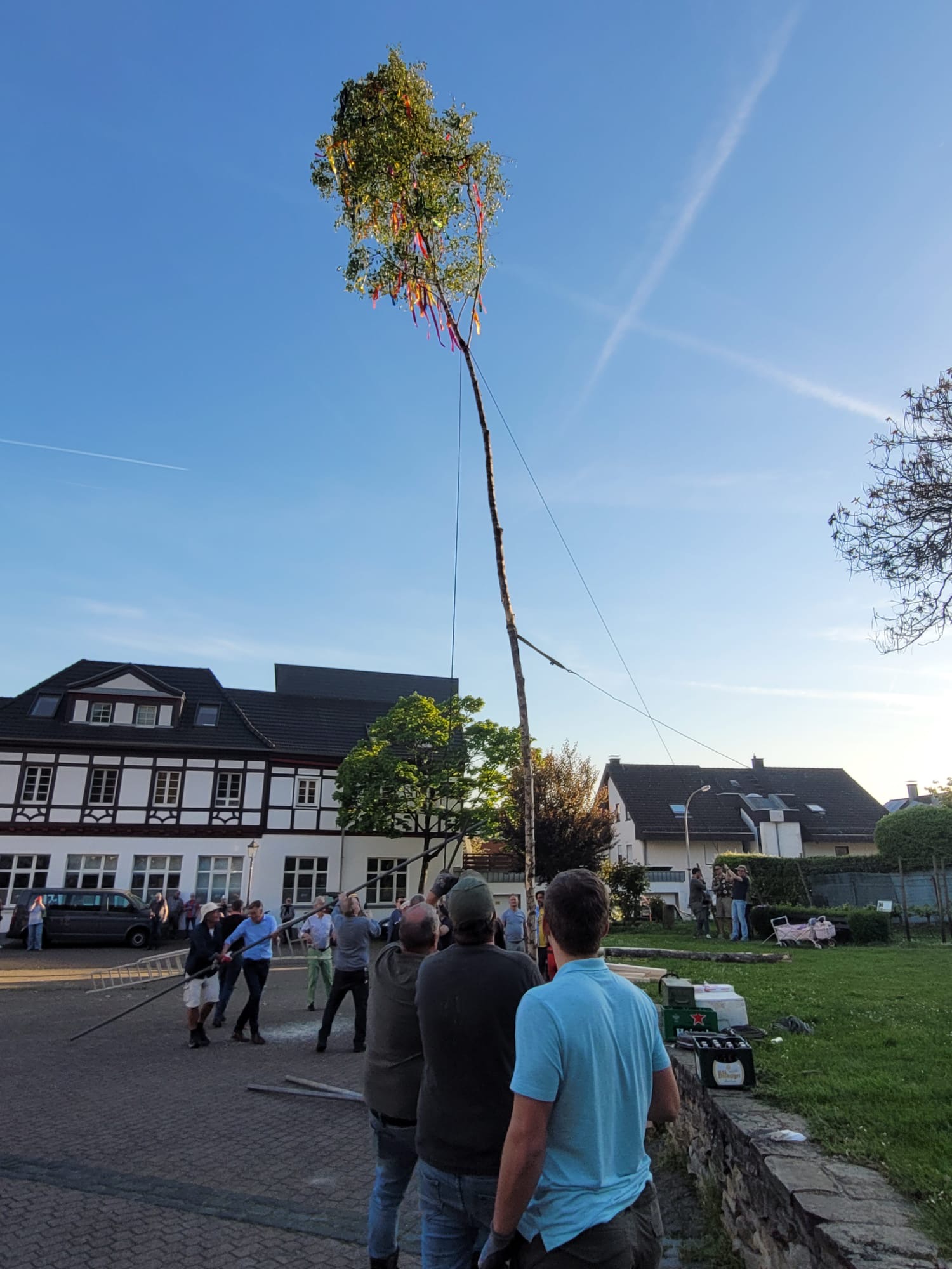 Im Mittelpunkt stand wie jedes Jahr das Aufstellen des Maibaums. Und auch in diesem Jahr wurde wieder nicht gekleckert, sondern geklotzt: Mit beeindruckender Länge – und ungewöhnlicher Schlankheit – zog die Birke alle Blicke auf sich. Doch die imposante Erscheinung brachte ihre Tücken mit sich.