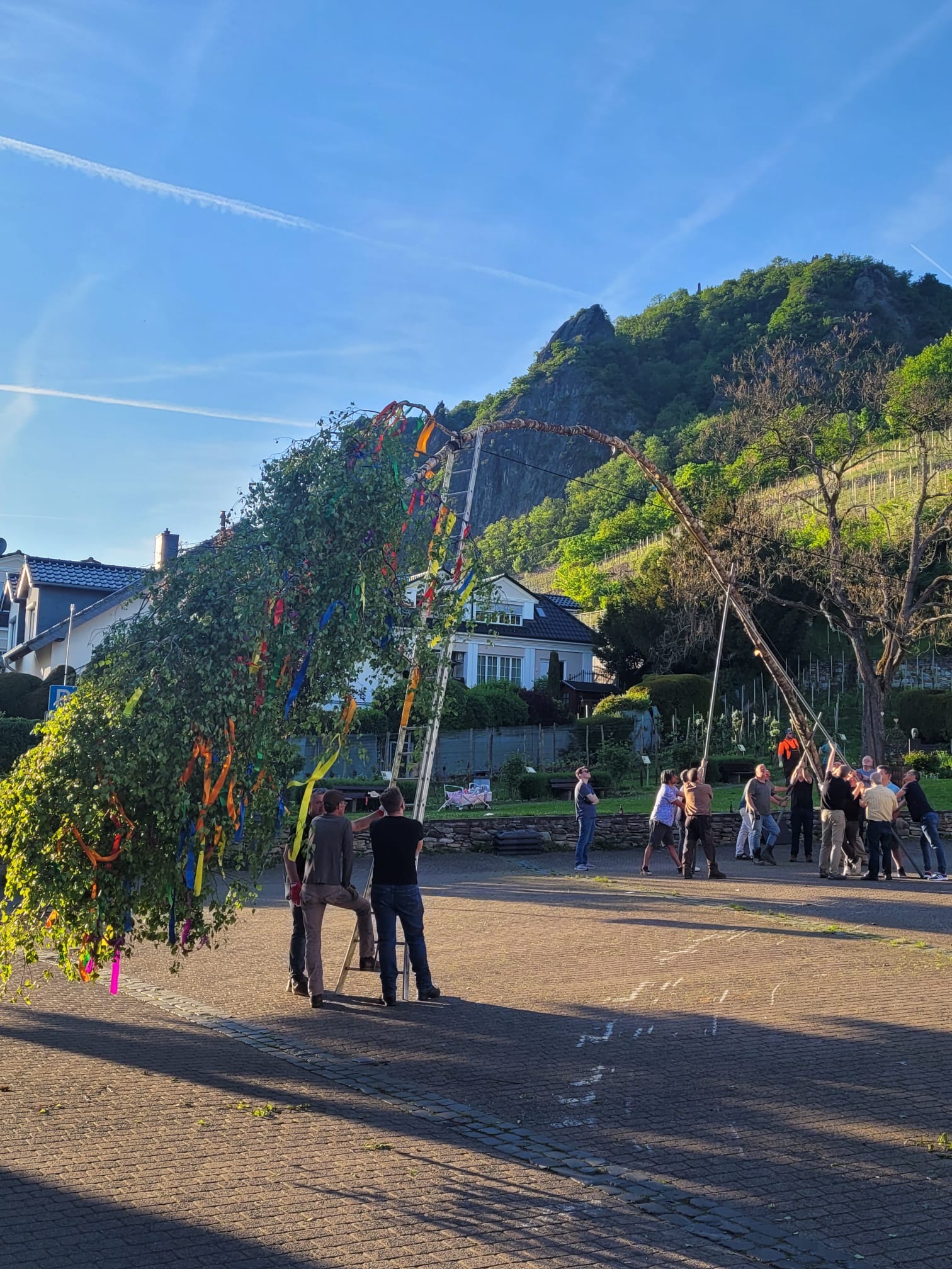 Der Ziepchensplatz war gut gefüllt, als sich Rhöndorf am Vorabend des 1. Mai zum traditionellen Maiansingen versammelte. Bei bestem Frühlingswetter strömten Jung und Alt zusammen, um gemeinsam den Mai willkommen zu heißen – und natürlich den berühmten Rhöndorfer Maibaum aufzustellen. Und wie es sich für unser schönes Rhöndorf gehört, wurde auch dieser Abend zu einem ganz besonderen Erlebnis.